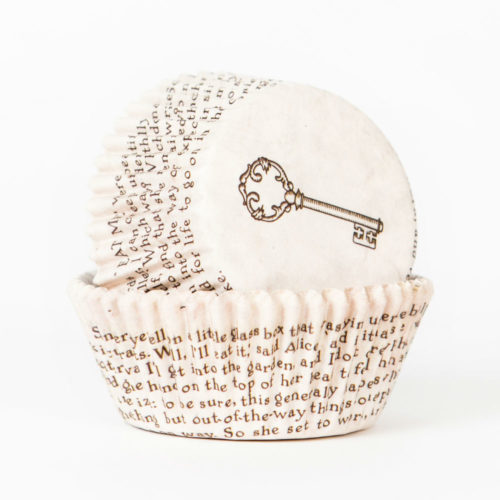 Fall down the rabbit hole and into these adorable Alice in Wonderland cupcake liners! The liners have an image of a key on the bottom and the following passage on the side: