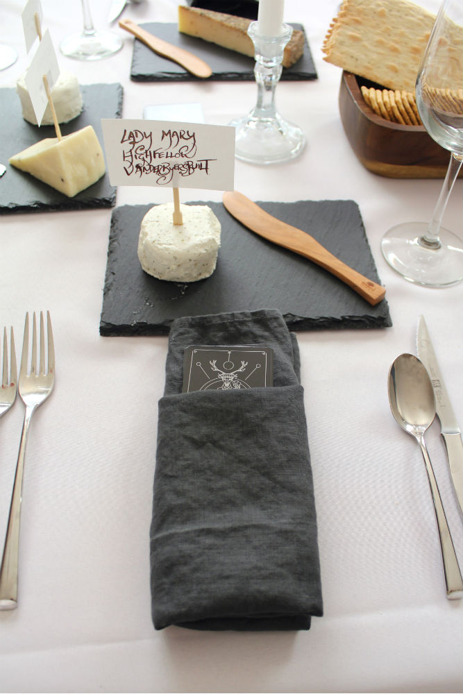 And I began prepping the dinner party. I decided to go with a white and slate theme to tie into the board game box, and as an excuse to give everyone their own mini cheese plate.