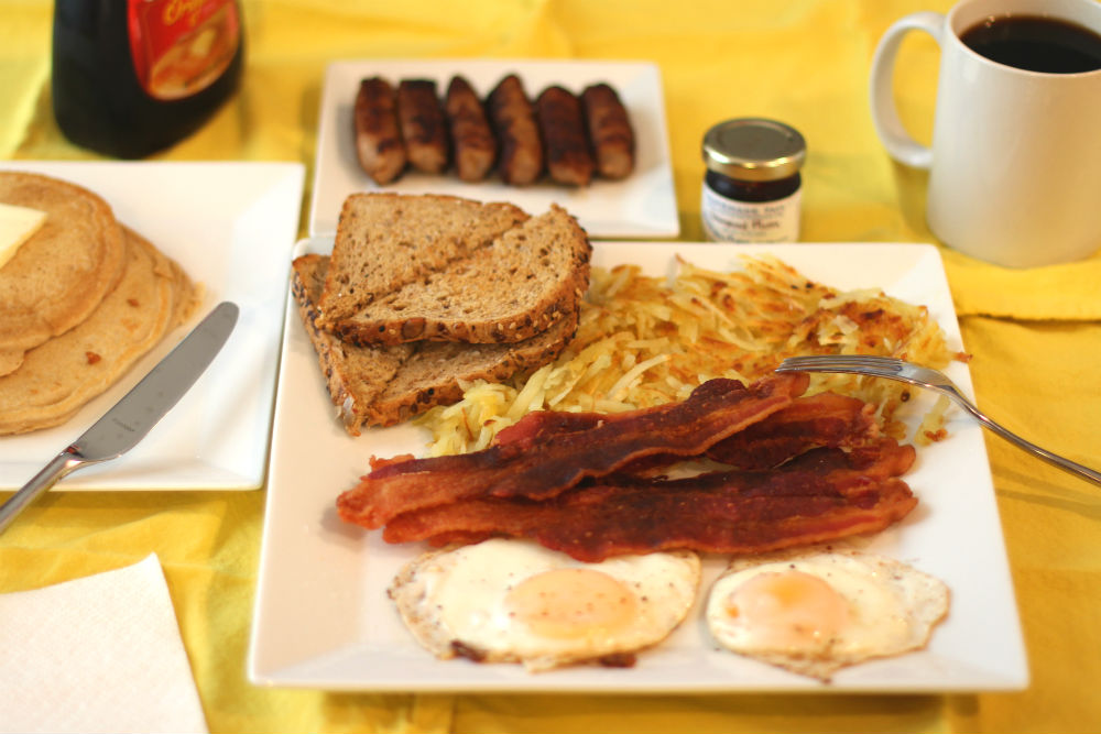 Scones: I made scones a day in advance, so they were all ready to go. When ordered, I reheated one in the microwave for about 20 seconds, split it open, and added some butter and jam.