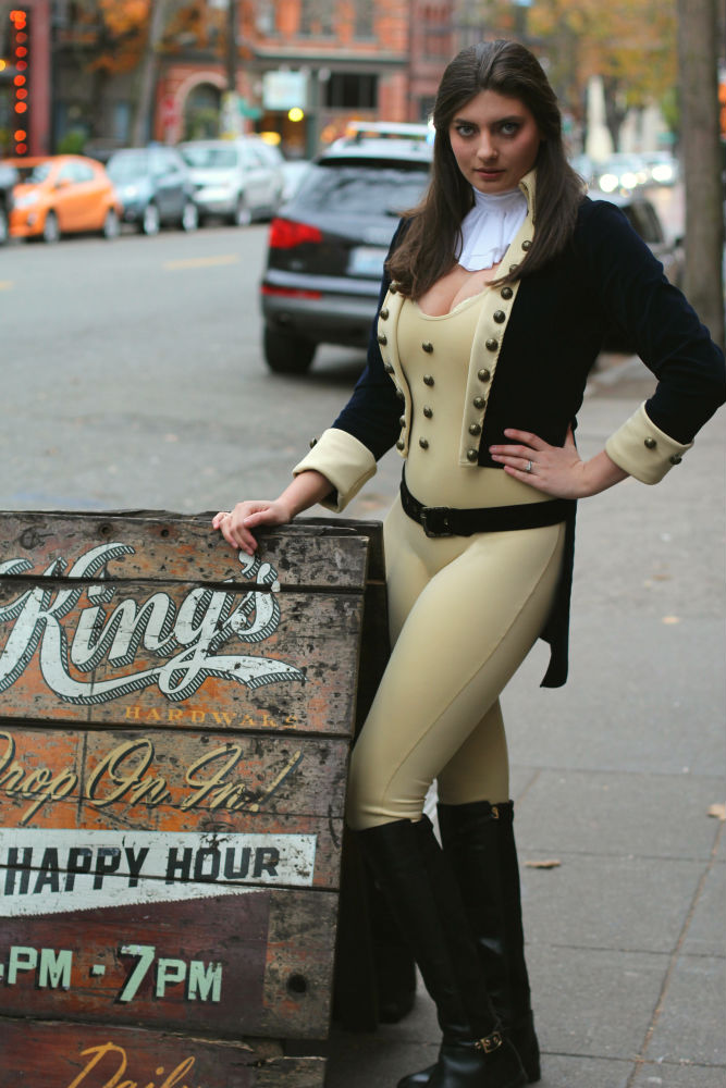 The lovely and talented Liz Leo shot these pics of me at King’s Hardware, where we stumbled upon the perfect American Flag table in their back patio. It was meant to be. And for those asking, this costume is very comfortable and well made. It’s the highest quality pre-made costume I’ve seen! So turn on the Hamilton soundtrack and guess which song lyrics served as inspiration for each pic: