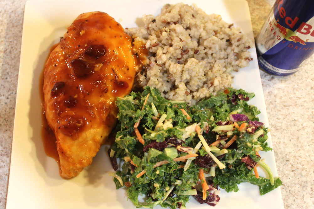 But seriously. You’re going to mix a couple of ingredients together to make a sauce, pour it over the chicken, and let the oven do it’s job while you play a few rounds of PUBG. (You’ve gotta earn that chicken dinner, after all!) I recommend pairing the chicken with some rice (to soak up additional sauce), salad, and a nice energy drink to boost your health. See the recipe below!